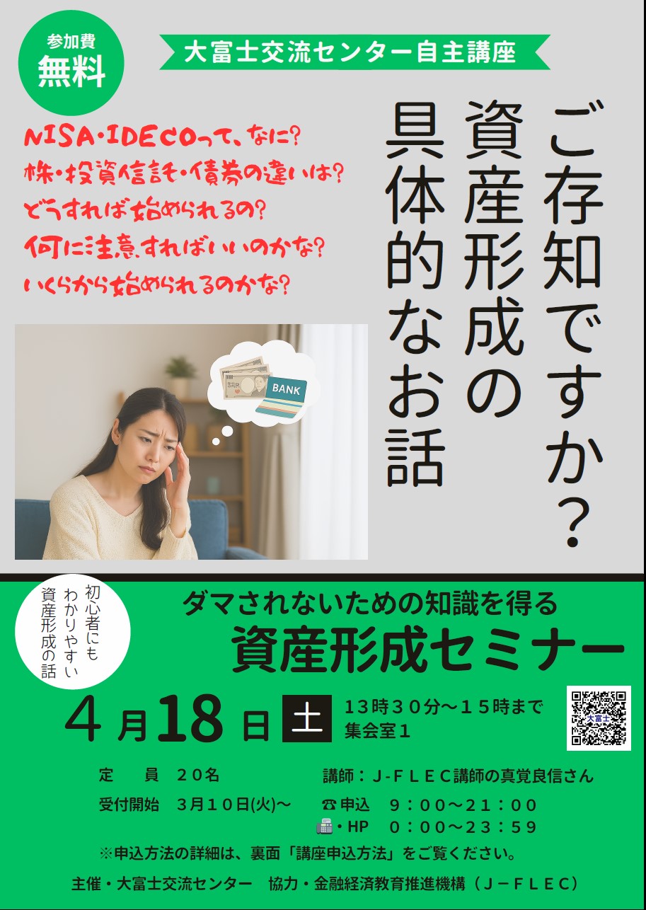 【自主講座】ダマされないための知識を得る「資産形成セミナー」